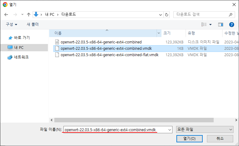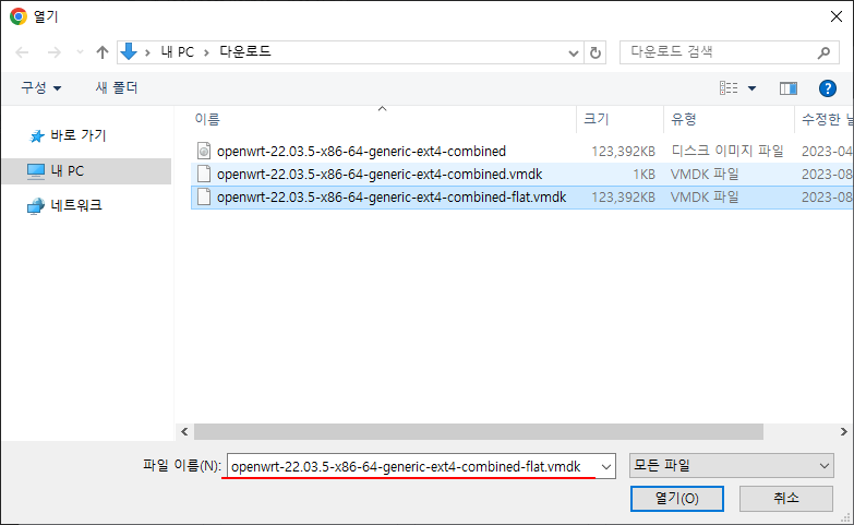 9. FLAT 파일은 나타나지 않으니 VMDK 파일을 선택한다.