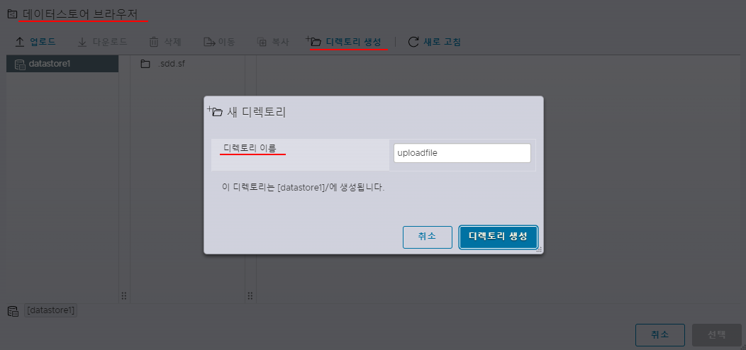5. 데이터스토어 브라우저에서 디렉터리를 생성하고 이름을 짓는다.