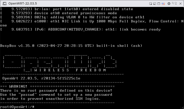 19. OpenWRT는 그냥 엔터를 치면 바로 로그인된다.