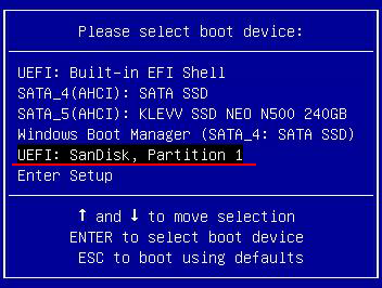 Windows Boot Manager 항목이 보이면 UEFI 부팅 디바이스에서 엔터를 친다.