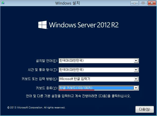 2. 한글 키보드(103/106키)를 선택한다.