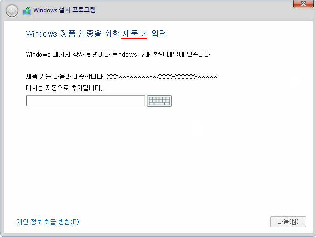 라이선스 키를 입력해야 설치를 진행할 수 있다.