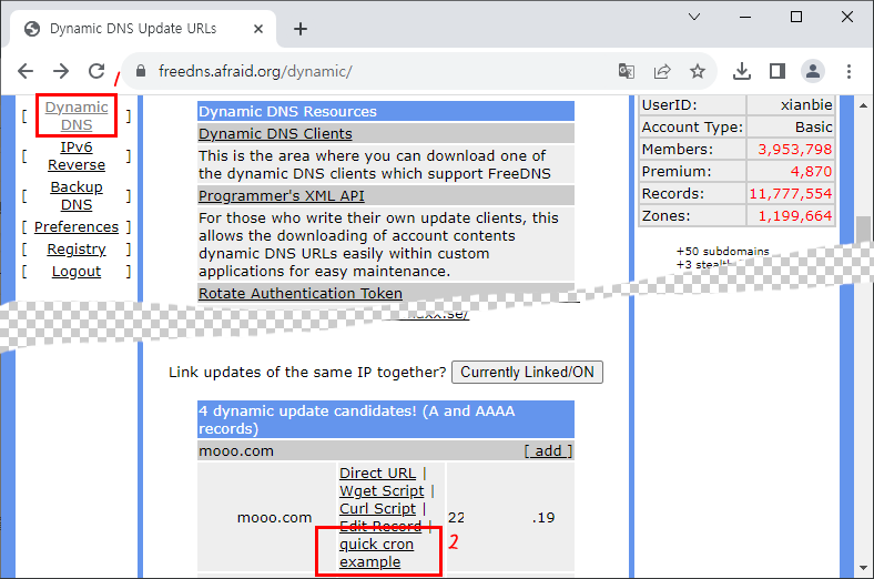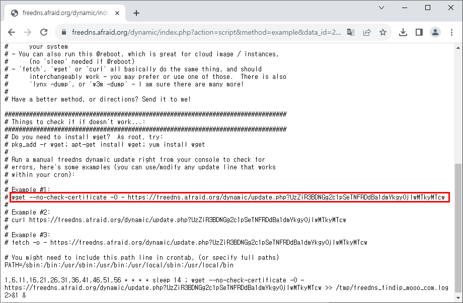 업데이트코드는 freedns.afraid.org 에서 복사해 둔 것이다.