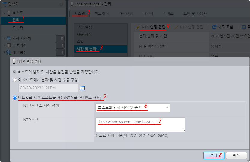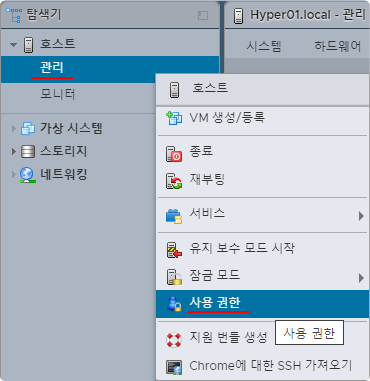 먼저 ESXi 관리자 페이지에서 SSH(Secure Shell)를 사용으로 변경하고 설정한다.