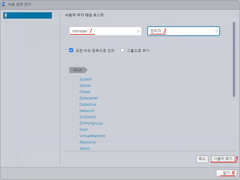 ***로그아웃했다가 새로운 관리자로 로그인 후 ROOT의 권한을 제거한다.
