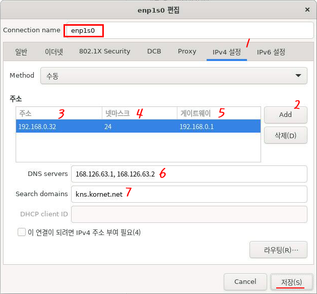 서버가 설치되는 네트워크에 부합하는 IPv4를 아래 예처럼 설정한다.