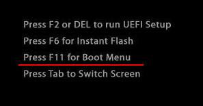 ASROCK 메인보드는 F11, ASUS는 F8을 누르라고 한다.