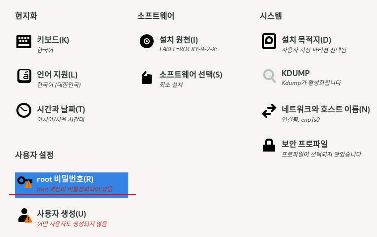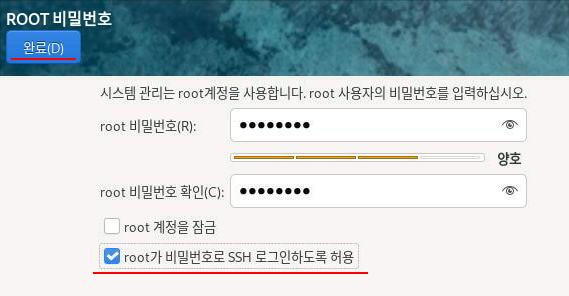 사용자 설정에서 root 비밀번호로 간다.