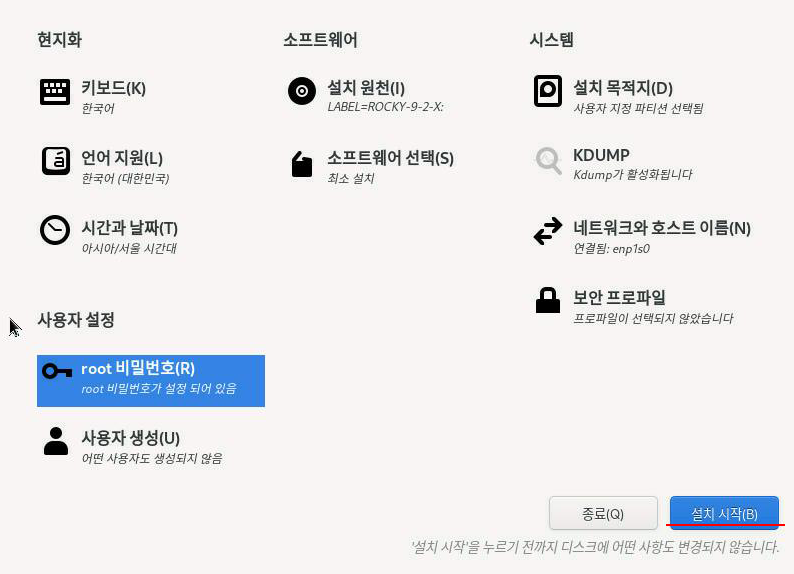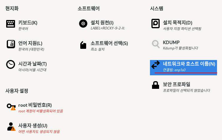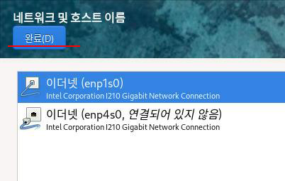 네트워크와 호스트명을 설정했으면 완료를 클릭한다.