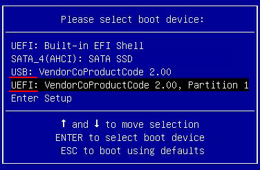 BIOS 또는 UEFI이냐에 따라서 부트 디바이스 선택이 다름에 유의한다.