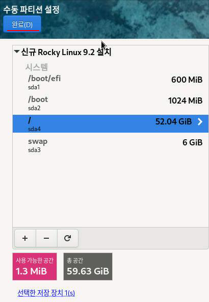 파티션 생성 정보를 확인했으면 완료를 클릭한다.