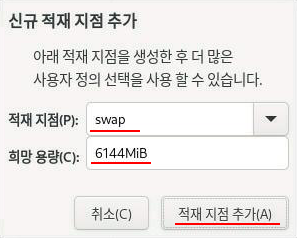 SWAP으로는 4GB~8GB를 할당한다.
