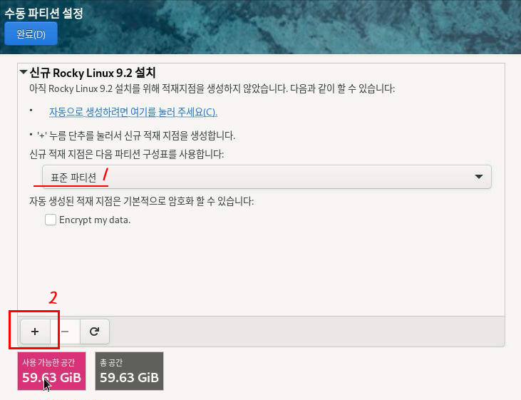 XFS 파티션을 수동으로 구성하는 게 나중에 유지보수할 때 수월하다.