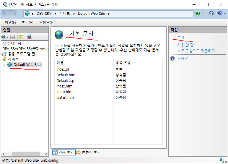 IIS가 설치돼 있지 않으면 IIS 10 설치 - 기본을 먼저 선행한다.