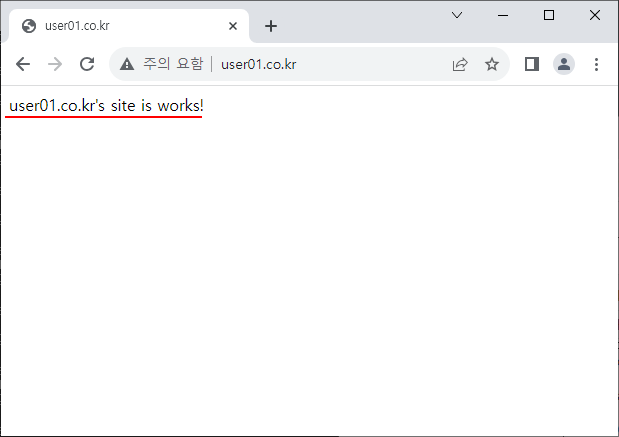 echo "user01.co.kr's site is works!" > /home/user01/public_html/index.html
