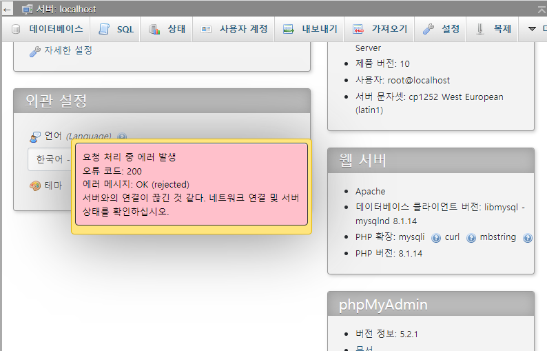 하여 여기서는 버전 호환성을 무시하는 식으로 phpMyAdmin을 설치한다.